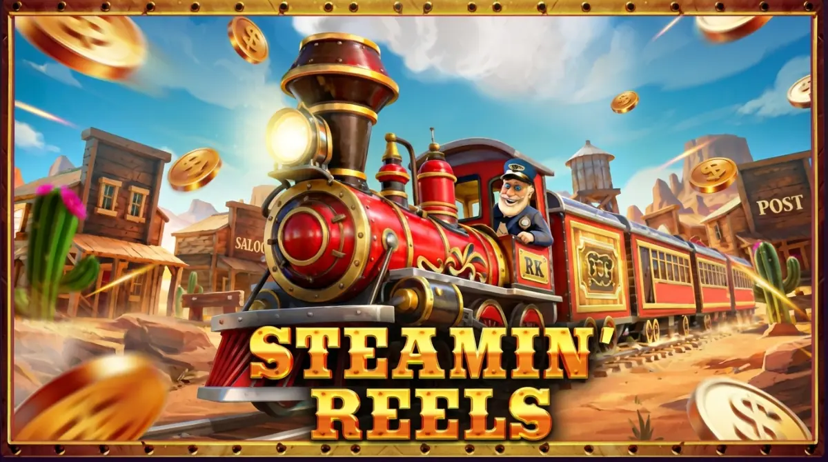 Steaming Reels is a new game from Reel Kingdom & Pragmatic Play, released on 19th March 2026. The action takes place in the late 19th century Wild West. All action takes place on a dusty rail track weaving through a cacti studded landscape. The game has a 5×3 format with 10 lines, but the game is mostly centered around the fabulous bonus feature.